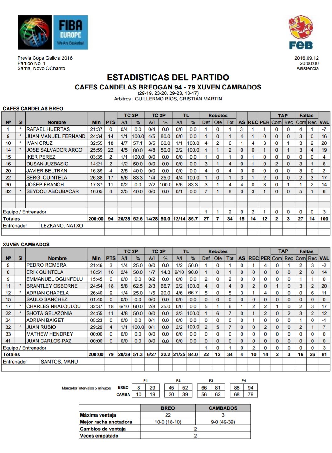 | 12-Set | Cafés Candelas Breogán vs Xuven Cambados (Copa Galicia) | 94-79 | ||||