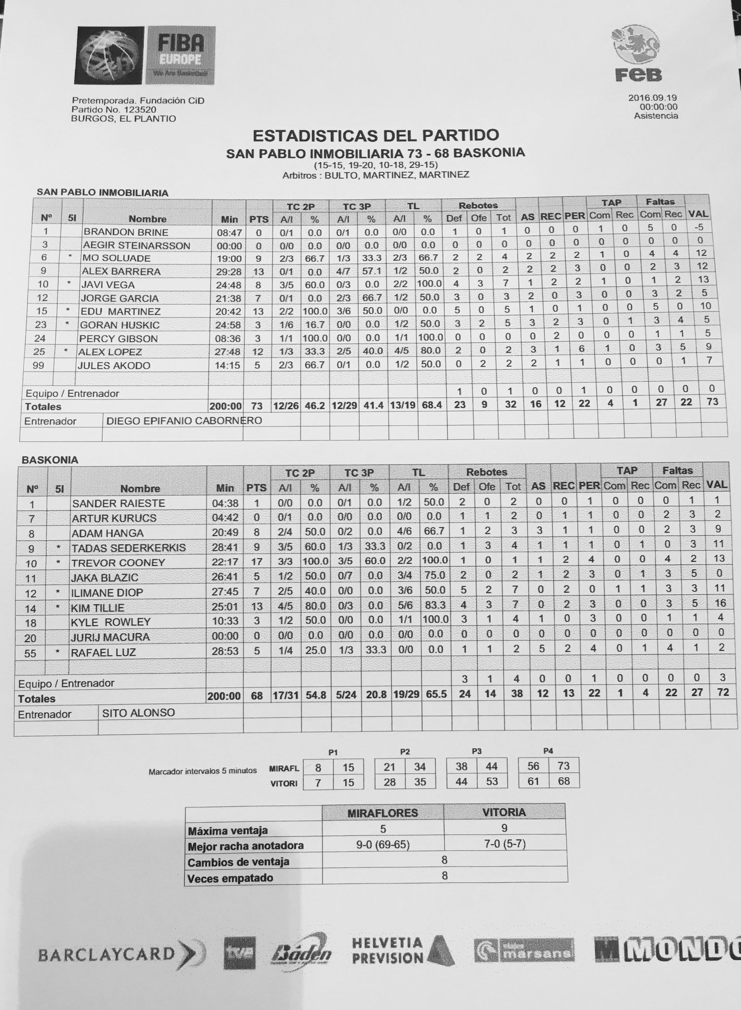 | 19-Set | San Pablo Burgos vs Laboral Kutxa Baskonia (Torneo Fundación Cid) | 73-68 | ||||