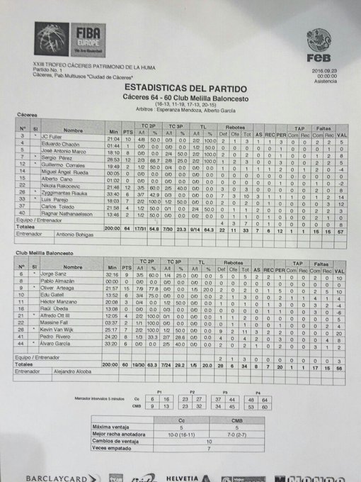 | 23-Set | Cáceres Patrimonio de la Humanidad vs Club Melilla Baloncesto | 64-60 | ||||