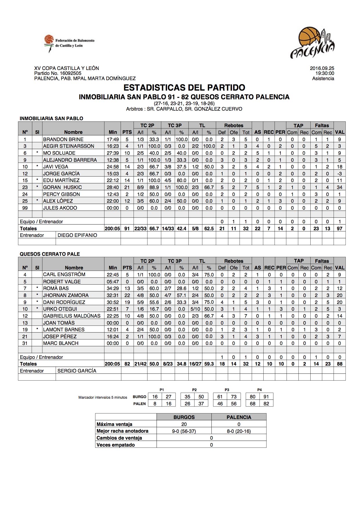 | 24-Set | San Pablo Burgos vs Carrefour ‘El Bulevar’ de Ávila (Semifinal COPA CyL) | 96-75 | ||||