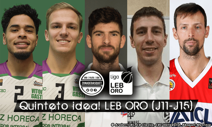 Alcanzamos la tercera entrega del curso de nuestros quintetos ideales de la LEB Oro, seleccionando esta vez a los mejores entre las jornadas 11 y 15, con Sáenz Horeca Araberri recuperando el protagonismo. Estos han sido los tres mejores en cada posición: