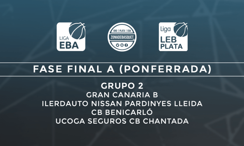 El nuevo modelo de competición supone que en este Grupo 2 no haya anfitrión, pues jugarán en Ponferrada, al igual que el Grupo 1, en un sistema de competición en el que suben ambos campeones y el vencedor del duelo entre los segundos clasificados. A este Grupo 2 llega el Gran Canaria B, un equipo joven de alto ritmo, con internacionales, Júniors destacados a nivel nacional y que vienen a ganar tras ser primeros en el B. Pardinyes está habituado a competir con los mejores equipos del Grupo C cada temporada, con su juego small-ball y una figura como Wendell Davis que quiera que esta fase sea la suya. Duro rival el que se encontrarán todos en Chantada, equipo lucense que pondrá mil trampas en su defensa y ojo porque pueden dar la sorpresa, algo que también quiere hacer el Benicarló, revelación del Grupo E y que maximiza sus virtudes minimizando sus defectos.