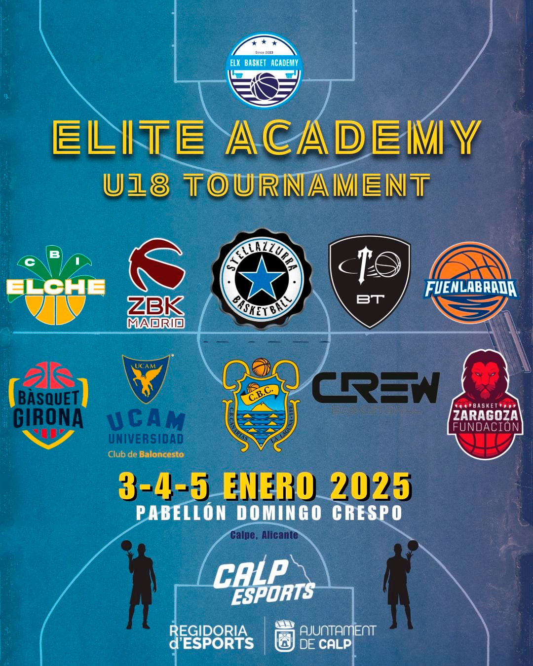 Se estrena en Calpe un nuevo Torneo Junior que quiere ser una referencia como punto de encuentro de Academias de baloncesto bajo la denominación de Elite Academy U18 Tournament. Con la Belx Academy de Elche como anfitriona, el torneo presenta una pinta estupenda, con la presencia de clubes formadores como Zentro (terceros en el último campeonato junior de España) o BT Torrelodones, a canteras ACB potentes con presencia en Tercera FEB como UCAM, Zaragoza o Canarias, hasta el toque internacional con Crew o Stella Azzurra. De tal forma, desde el 3 al 5 de enero en el pabellón Domingo Crespo, habrá diez equipos juniors en liza, en un torneo que seguro que viene para quedarse y empezar a resonar con fuerza. Para saber más sobre los equipos y jugadores que la disputarán, preguntamos a Arturo Agulló del CBI Elche, que nos escribe estas líneas: